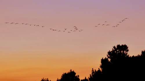 Canada geese — heading to Drakes Estero for the night — fly over Mitchell cabin around sunset daily. They don’t wear masks, but they do maintain social distancing.