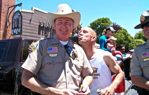 Towtruck driver Tim Bunce (right), who entered a 1953 Farmall Tractor in the parade, photo-bombs Sheriff’s Lt. Doug Pittman’s picture. Bunce took first in the Farm Vehicle division and first in the best-vehicle division.