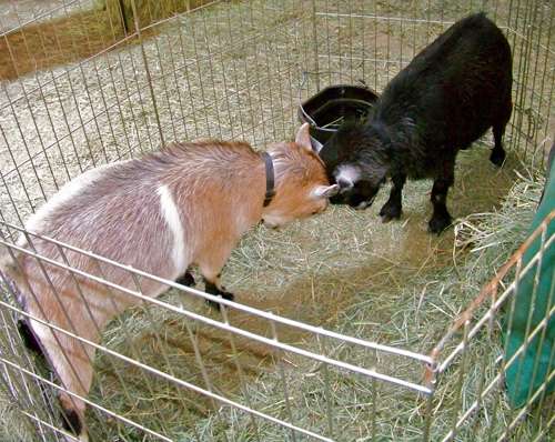 Nigel, left, and his cousin Annabelle make contact during the West Marin 4-H Fair on Saturday at Toby’s Feed Barn. Sisters Olivia and Phoebe Blantz of Nicasio brought them as they have in past years, so they are all regulars.