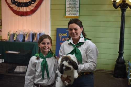 Rabbit showmanship — Junior Livestock, so to speak. As usual, Chris Giacomini made Toby’s Feed Barn available for Saturday’s contests and showmanship events. Here are the awards given out at the rabbit show: •Novice 1st Place: Hannah Slocum, •Intermediate 1st Place: Ricky Kelley, •Intermediate 2nd Place: Danielle Breeden, •Intermediate 3rd Place: Nick Kelley, •Senior 1st Place: Grace Perkins, • Senior 2nd Place: Tammy Kelley, • Best of Show Rabbit: Tammy Kelley for her Mini Rex Senior Buck, •Reserve Best of Show Rabbit: Grace Perkins for her White Mini Senior Buck. Pictured are Trixie, a nine-month-old French Lop held by Danielle of Petaluma with her friend Hannah.