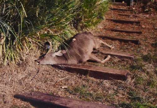 One morning when I started down my front steps en route to get The San Francisco Chronicle, I found a three-year-old blacktail buck lying dead on the ground just outside my gate. There were no signs of trauma on the deer although there were small lesions in his mouth. It turned out the buck had died of a necrobacillosis infection.