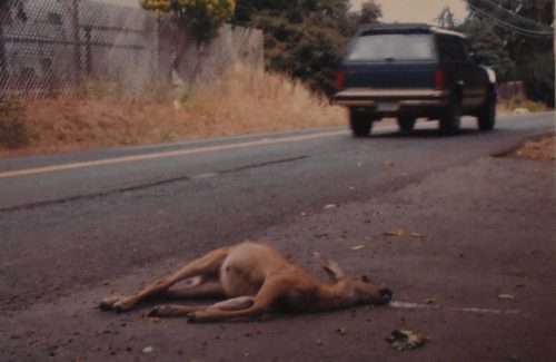 Awhile back, I was driving on Highway 1 near home when I spotted a dead fawn beside the roadway.