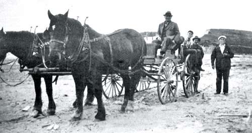 Quinto Codoni on a wagon at Schooner Bay, an arm of Drakes Estero from which he shipped hogs to San Francisco.