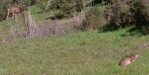 Lynn herself made a fascinating observation this week. She spotted a bobcat walking toward a doe in the field downhill from Mitchell cabin.