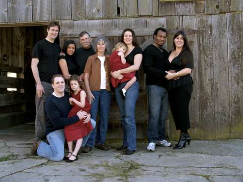 Family gathering (back row from left): Ivan Gale, Annalene Gale née MacLew, Mike Gale, Sally Gale, Amy Culver née Gale holding daughter Izzy, Rohan Gordon, Katie Gordon née Gale. Front row: Brent Culver and daughter Sarah Culver.