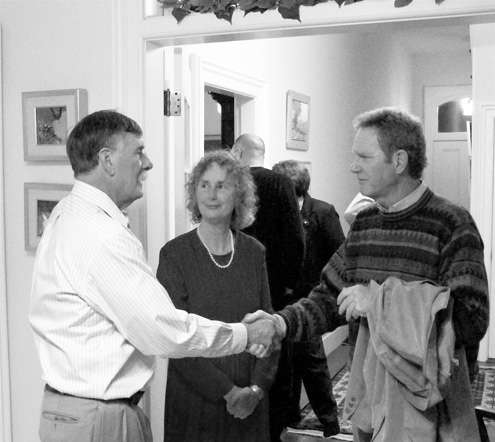 Mike and Sally talk with Marin County Supervisor Steve Kinsey (right) during a party Saturday for Ivan and Annalene.
