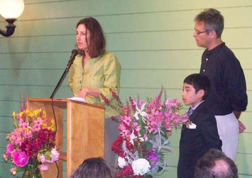 The memorial began in Toby’s Feed Barn where friends and community members paid tribute to the late journalist and economist. Elizabeth Barnet (left) and Gary Ruskin (right) acted as masters of ceremony. Barnet and Mr. Rowe co-founded West Marin Commons. Ruskin, who once shared an office with Mr. Rowe in Washington, spoke of the man’s major importance as an economist. He drew a round of applause when he suggested naming the new commons after Mr. Rowe. His son Joshua, a third grader at West Marin School, told about having Mr. Rowe for a father.