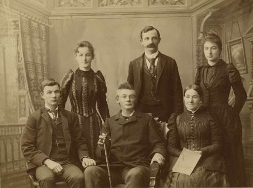My great grandfather Amos Mitchell and great grandmother Mary Jane Mitchell née Guiher with their children (from left): Lansing, Lulu, Miles Lecki (my grandfather), and Amy. Photographer’s studio portrait, 1892.