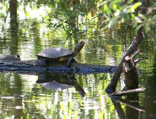 A Western Pond Turtle sunning himself Tuesday at a pond next to Anastacio and Sue Gonzalez’s home in Point Reyes Station.
