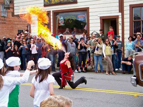 More on the Internet front: Bonnie Porter of Inverness, who is a computer technician in her day job, astonished parade goers Sunday with her fire eating. For more Western Weekend photos, please see the next two postings.