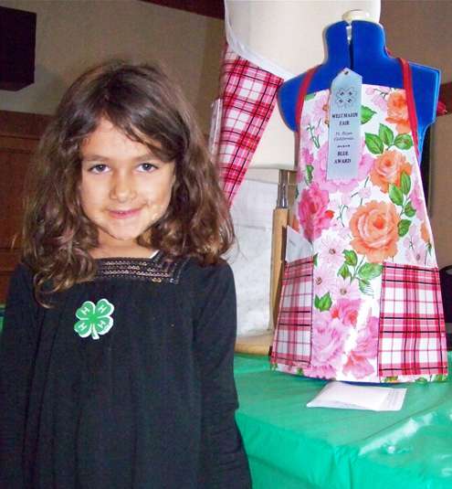 Brinlee Stevens, 5, of Point Reyes Station won a blue ribbon in the Sewing Division for her red-and-white apron at right. In addition, she won a gold ribbon for her pin cushion.