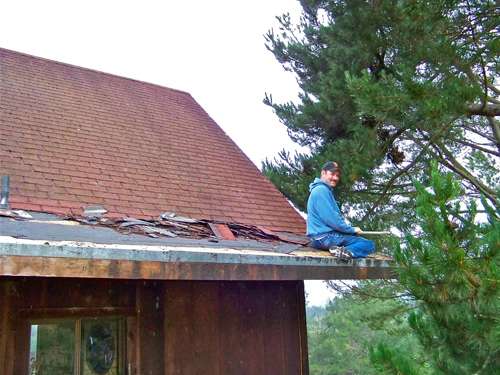The cottage is completely ringed by tall redwoods, and I spent most of one day with a rake and pressure washer merely removing all the redwood needles that had accumulated on the roof.
