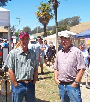 Rancher Bill Jensen (left) and cabinetmaker Bruce Kranzler, like many other Tomales-area residents, took advantage of Sunday’s “Party in the Park” to catch up.