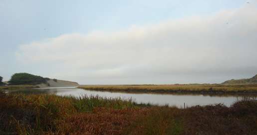 For part of the year, Salmon Creek’s lagoon is cut off from the ocean by a seasonal sandbar. (Photo by Moro Buddy Bohn)