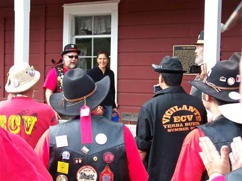 Point Reyes Station photographer Art Rogers, who currently has an exhibition at the Jack Mason Museum of West Marin History, documented the event. Here he directs protesters to find spots where his camera can record everyone’s face.
