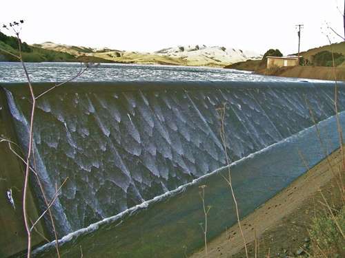 Nicasio Reservoir water rushes down the spillway below Seeger Dam and flows into nearby Papermill Creek.