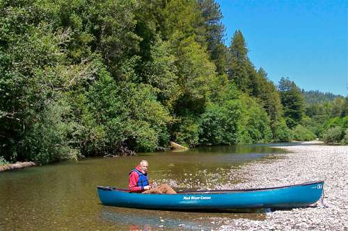 Lynn and I had not traveled to Gualala primarily to stay at the Breakers, however. After all, Mitchell cabin has its own deck with a narrow view of Tomales Bay, a hot tub, and a fireplace. A key attraction was the Gualala River where we wanted to go canoeing.