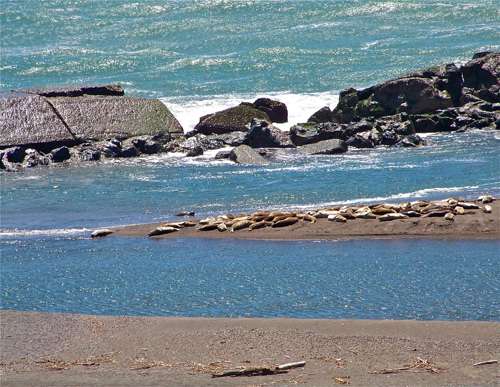 Our final stop on the way home was in Jenner where harbor seals could be seen basking on a sandbar. Lynn got into a conversation with an older couple from Los Angeles, who had also stopped to enjoy the scene, and came away convinced she had been talking with actor Ed Asner. I couldn’t tell, and we’ll probably never know for sure.