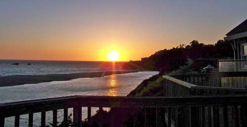 Sunset in Gualala. The mouth of the river can be seen at the right.