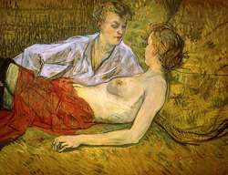 Henri de Toulouse Lautrec (1864-1901) is, of course, famous for his post-impressionistic paintings of nightclubs and prostitutes (right) in Montmartre.