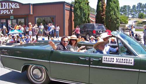 Grand Marshal of the parade Angelo Sacheli, who retired after 36 years as program manager in West Marin for county Health and Human Services, rode with his wife, Cathy Hall.