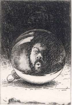 This etching is titled Artist’s Reflection.