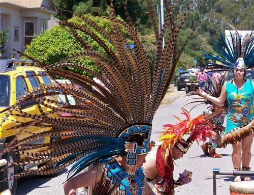 The Aztec Dancers are known as much for their colorful headresses as for their dancing to the beat of a drum. The group took 1st place in the Adult Music division.