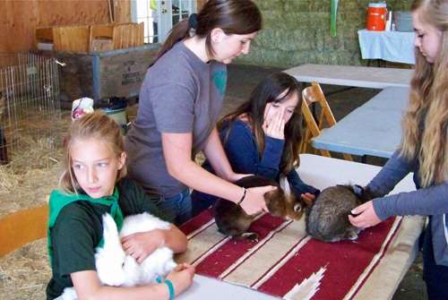 It’s spelled Rabbits. From left on far side of table: Point Reyes-Olema 4-H Club member Ellierose Jackson from Nicasio exhibited a nine-week-old Angora rabbit named Joey; Tri-Valley 4-H Club member Nicole Casartelli showed a Castor mini-rabbit; and San Rafael 4-H Club member Erin Rose Charlton showed a three-year-old Lionhead named Finnegan.
