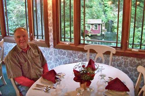 “Shakespeare in Cazadero? Mooo!” jokes Cazsonoma Inn owner Richard Mitchell (above), mimicking radio’s old commercial for Berkeley Farms milk. “No one believed there’d be ‘farms in Berkeley’ either.” The inn’s pond and waterfall can be seen out the window.