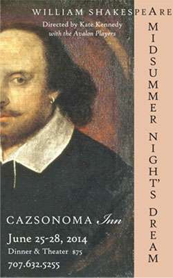 The stately old redwoods around Cazsonoma Inn will be hosts this summer to the Bard’s great comedy, A Midsummer Night’s Dream.