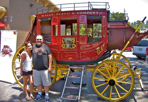 Tending the Wells Fargo stage in front of the bank were branch officers Edith Rojas and Jeff Schrotl.