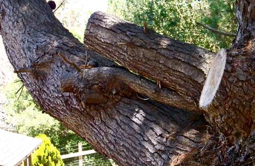 A log in a tree? Now that’s a real widow-maker, I said to myself last week when I spotted it teetering 10 feet off the ground in a crotch of a pine tree. The pine grows at the entrance to neighbors Skip and Renée Shannon’s driveway.