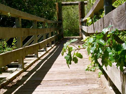 The pedestrian bridge near the White House Pool parking lot at times is so overgrown with poison oak that it takes care not to brush against it.
