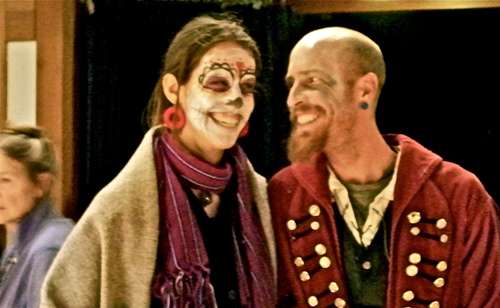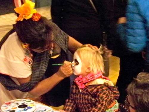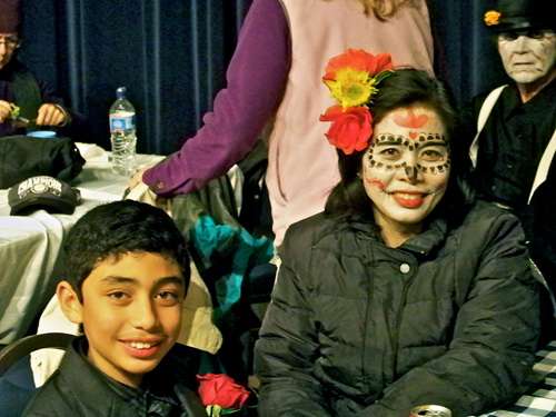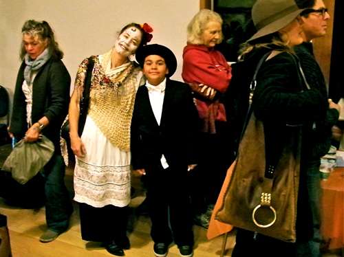 Carrie Chase and Diego Chavarria, 10, of Point Reyes Station showed up in elegant costumes. Here Diego waits to have his face painted.