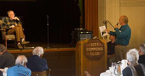 Doug Hill, president of the Berkeley City Commons Club, relays a member’s question to me at the end of my talk. (Photo by Dave LaFontaine)