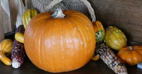Because Halloween falls during the harvest season, a traditional cornucopia (horn of plenty) is assembled annually at Mitchell cabin.