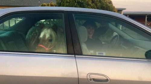 The evacuees’ love for their pets was epitomized in this widely circulated photograph of Lauren Mesaros of Santa Rosa escaping the fire with her pony Stardust in the backseat.