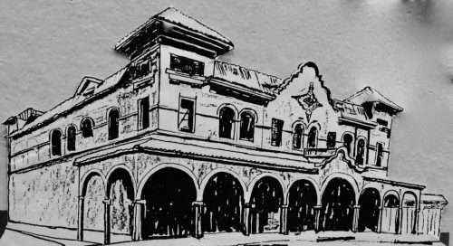 Point Reyes Station — There are some surprises in the display. Most West Marin residents are familiar with the Mission Revival architecture of the derelict Grandi Building, which was built as Hotel Point Reyes after an earlier brick building was destroyed in the 1906 earthquake.