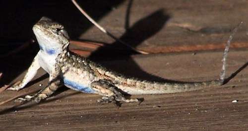 A male Western Fence Lizard, commonly known as a ‘Blue Belly,’ performs pushups to attract females and to warn off other males.