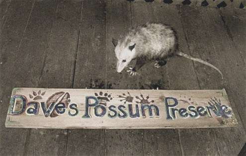Preserving possums. The late Seeva Cherms, daughter of Linda Sturdivant of Inverness Park, years ago noticed my interest in serving the local possum population, so one Christmas she created this sign for me. Unfortunately few possums have come around in the past three or four years, so the sign is now hanging in the basement.
