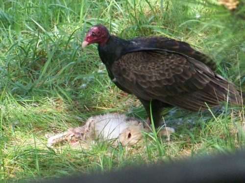 A turkey buzzard dines on carrion just below our deck. As for how the cat died and how it got there, I have no idea. Everything has to end somewhere, I suppose, and I guess this is the time and place to end this posting.