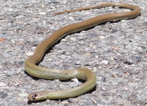 A Gopher Snake basking in sun near our driveway.