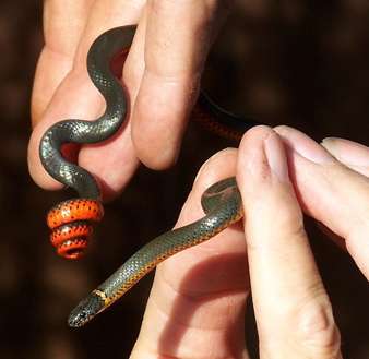 A Pacific Ringneck Snake that I found in a rotten log.