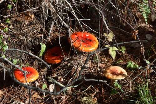 Amanita muscaria, with its red cap and white flecks, can be hallucinogenic if eaten, but it’s also poisonous if not prepared correctly. Amanitas are native to this area, and the Miwok are said to have consumed these mushrooms for the visions they produced.
