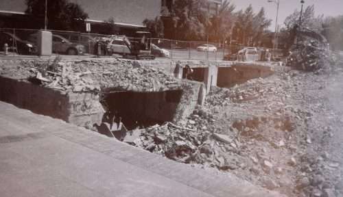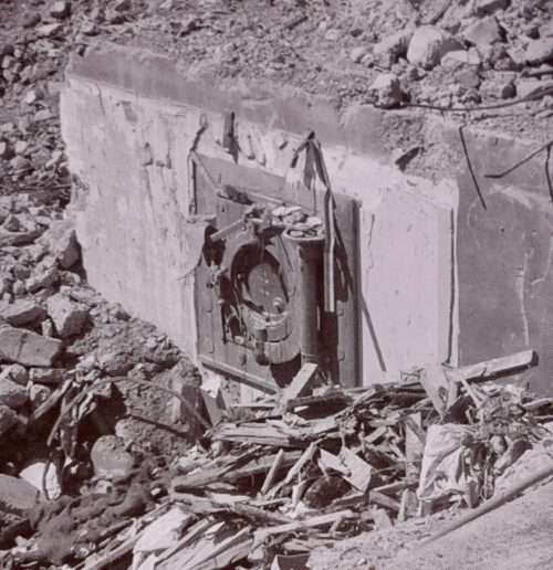 A safe found under a demolished building.
