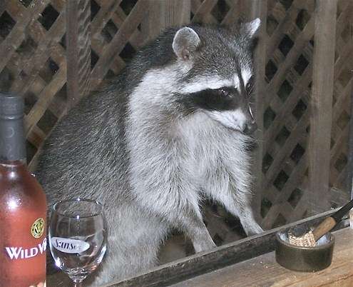 More of a trick was teaching this raccoon bartending. The only watering spot I know where patrons can still smoke a pipe these days is at the back of the No Name Bar in Sausalito, so that’s the job for which he’s probably in training. “Drambuie, you say?”