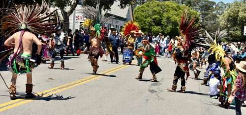 Also dancing in the street were Aztec dancers, a highlight of every parade.