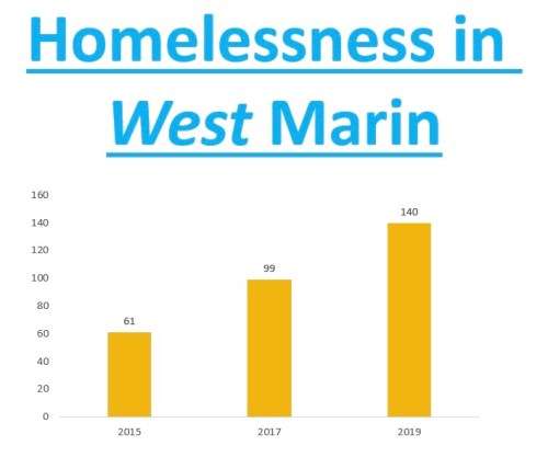In contrast, the homeless population of West Marin increased by 79 people during the same period. Of course, not all the homeless are living outdoors. Many are living in their vehicles.