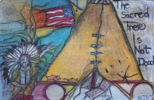 Two Arabian Adventures steeds in a feeding pen within a pasture next to Mitchell cabin. Since we haven’t succumbed to the national disaster yet, there’s nothing here for this buzzard.