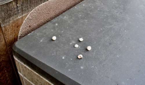They’re fun to have around, but it’s always sad when one of the nests comes loose, falls off the wall, and shatters on our deck below. For now we’re being careful to avoid shutting the kitchen door hard enough to shake the nest.